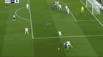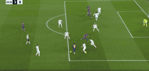 第40分钟,亚马尔在禁区内连续过人后送出传中,费兰·托雷斯原地倒钩,相当可惜。